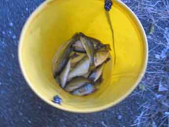 | 高田(琵琶湖を戻す会)・他2名 | 彦根旧港湾 | ブルーギル | 32尾/ 0.9kg | スジエビ | 天候 | 晴 | のべ竿を使ったウキ釣り。 | ![]() |